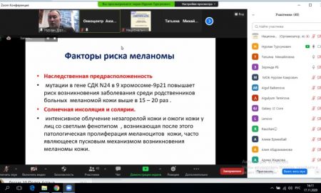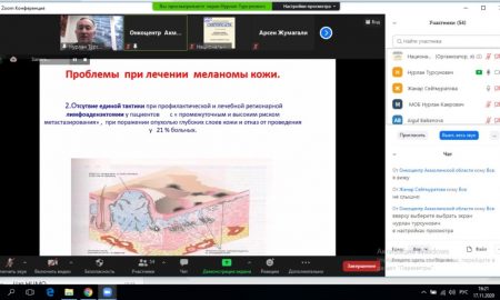 17 ноября 2020 года нашим центром проведен вебинар «Ранняя диагностика, диспансеризация и реабилитация больных меланомой кожи» Вебинар провел: *Балтабеков Нурлан Турсунович – зам.председателя КазНИИОиР, д.м.н., профессор, клинический аудитор КазНИИОиР, председатель Ассоциации онкологов и дерматологов РК, сопредседатель Евразийской ассоциации онкологов (ЕАФО). Участие приняли врачи из г.Нур-Султан, Акмолинской, Костанайской и др.